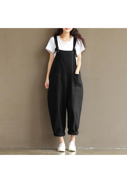 Askılı Büyük Cep Detaylı Kadın Salopet Tulum